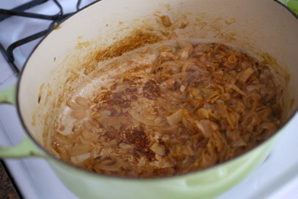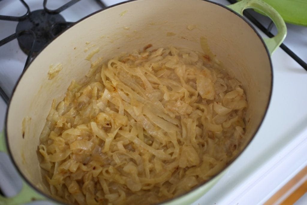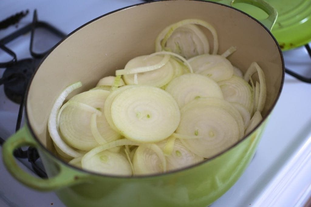 - Use any onions you like. Red ones turn a slightly dour gray when cooked for so long but you won’t be able to tell in the soup. I think sweet onions like Vidalias would get too sugary (for my taste) but some people like them.