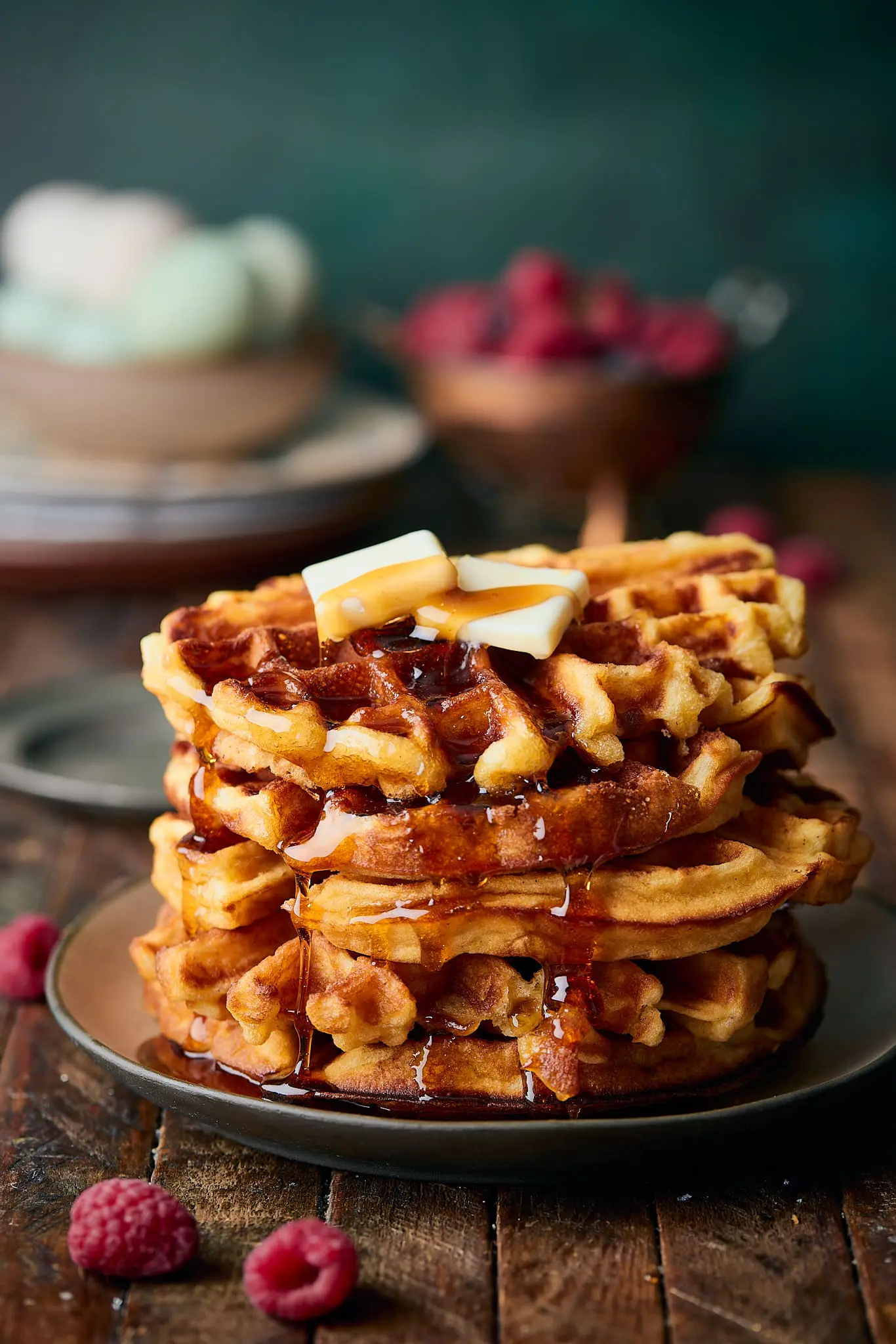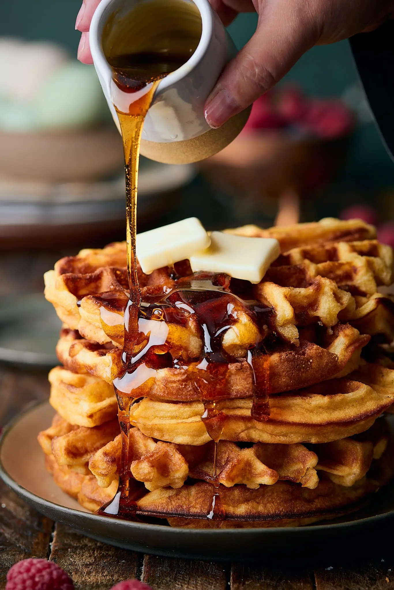 I don’t mean to be that person (you know who I’m talking about. Little mister or missus pickypants.) but when it comes to waffles, they’re almost always disappointing. They’re either too dense, too eggy or too soggy. Sometimes all of the above. I’ve had this vision of the perfect waffle in my head for years: light and airy, super crispy exterior, a little tangy, a little sweet. But every method I tried fell short.