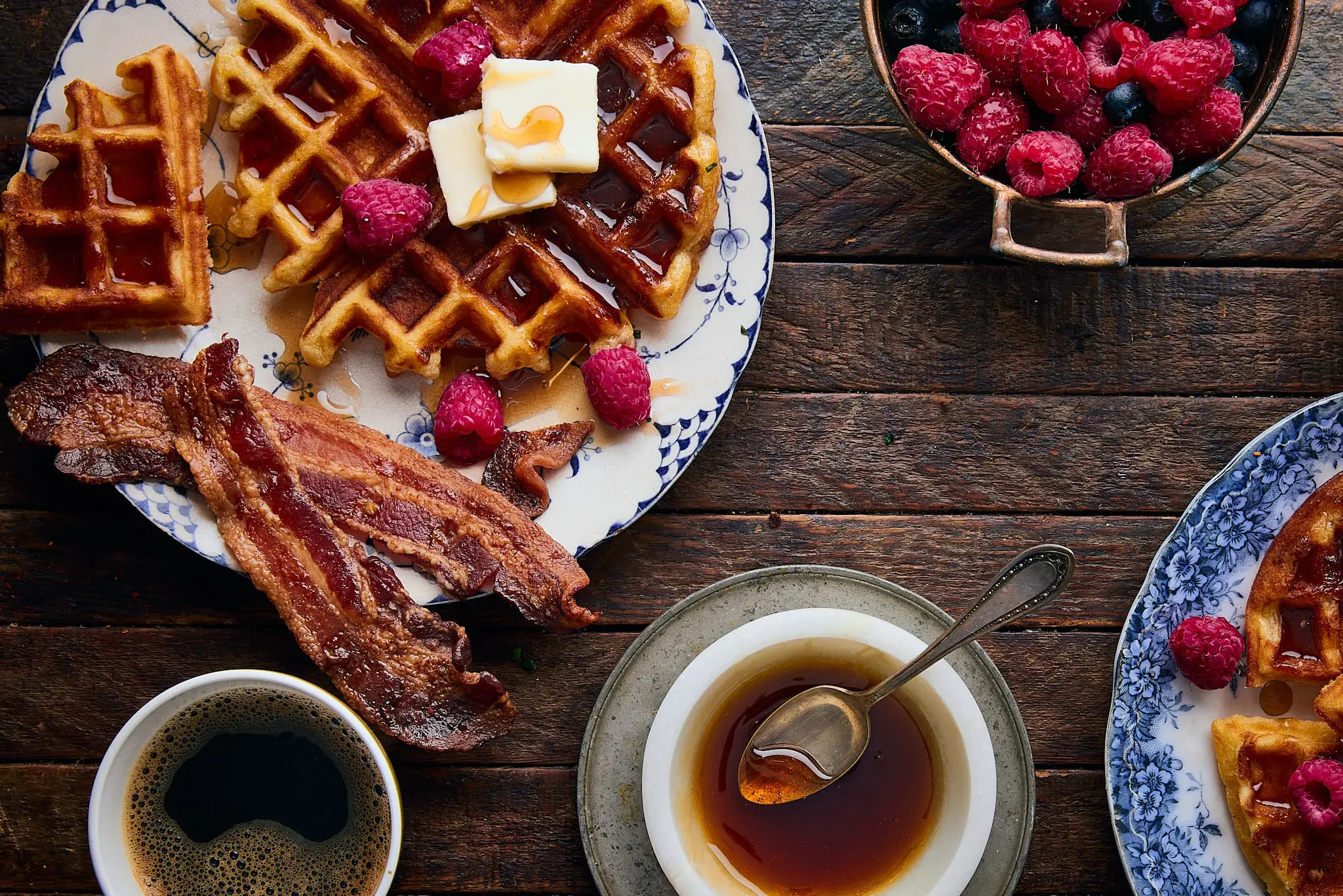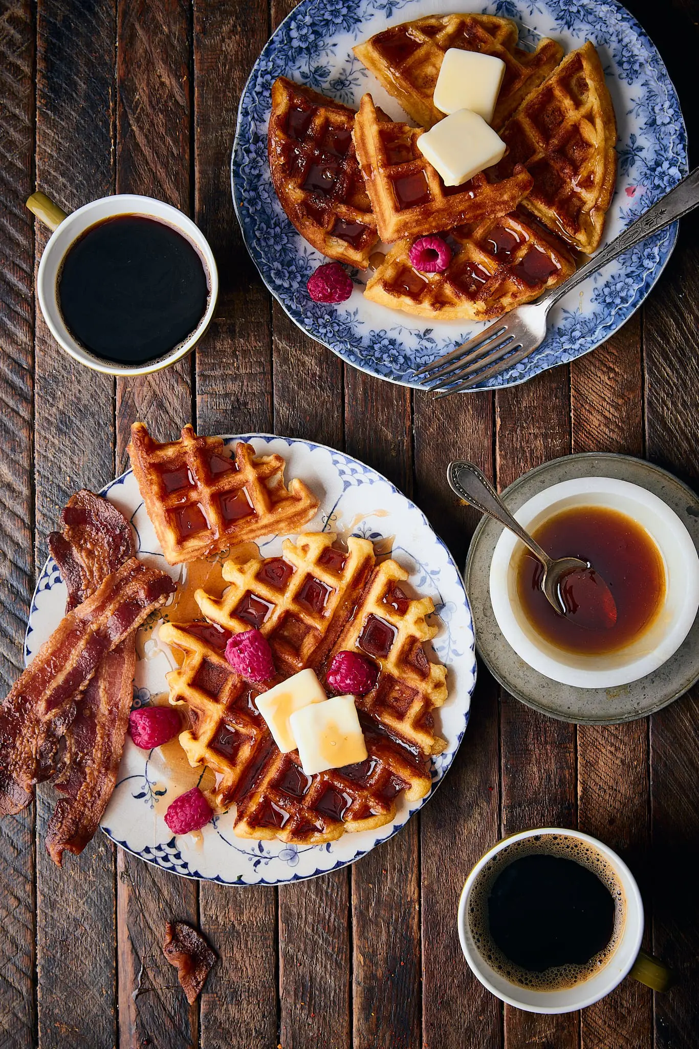 To keep things simple, let’s talk about the two main types of waffles popular in the U.S.: thicker Belgian-style waffles and thinner, crisper American-style. We’ve tried both, and much prefer the Belgian-style which delivers the crispiest surface with a pillowy, tender center. The thinner ones tend to lean towards just crisp, which are delicious, but to us, less interesting.
