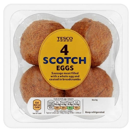 Admittedly, I haven’t eaten a “native” Scotch egg in years, so I wanted to refresh my memory of what kind of quality item you might find packaged in the chilled goods section of your local Tesco Metro. So I asked my Mum.