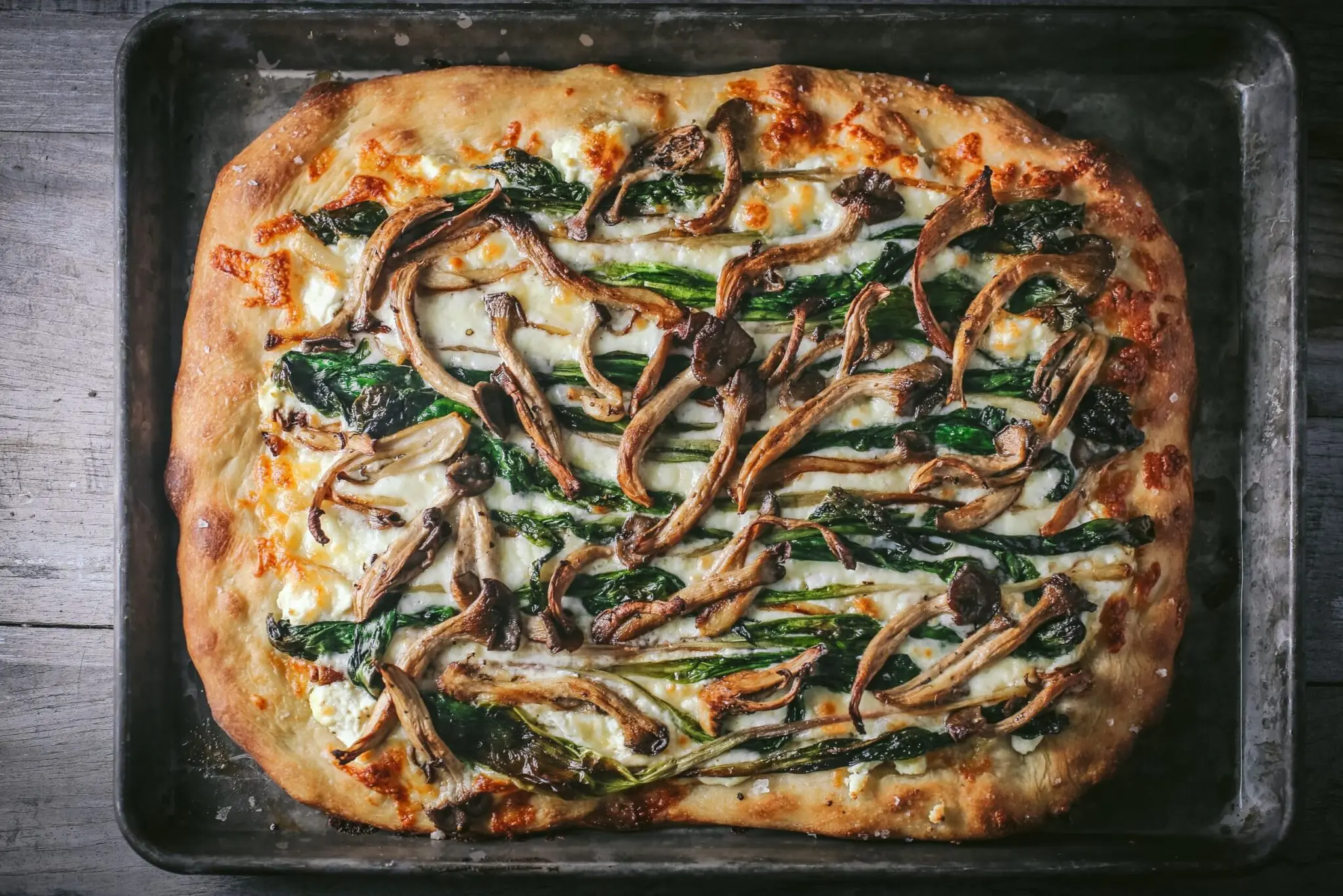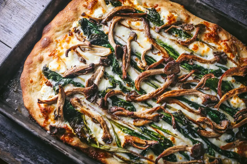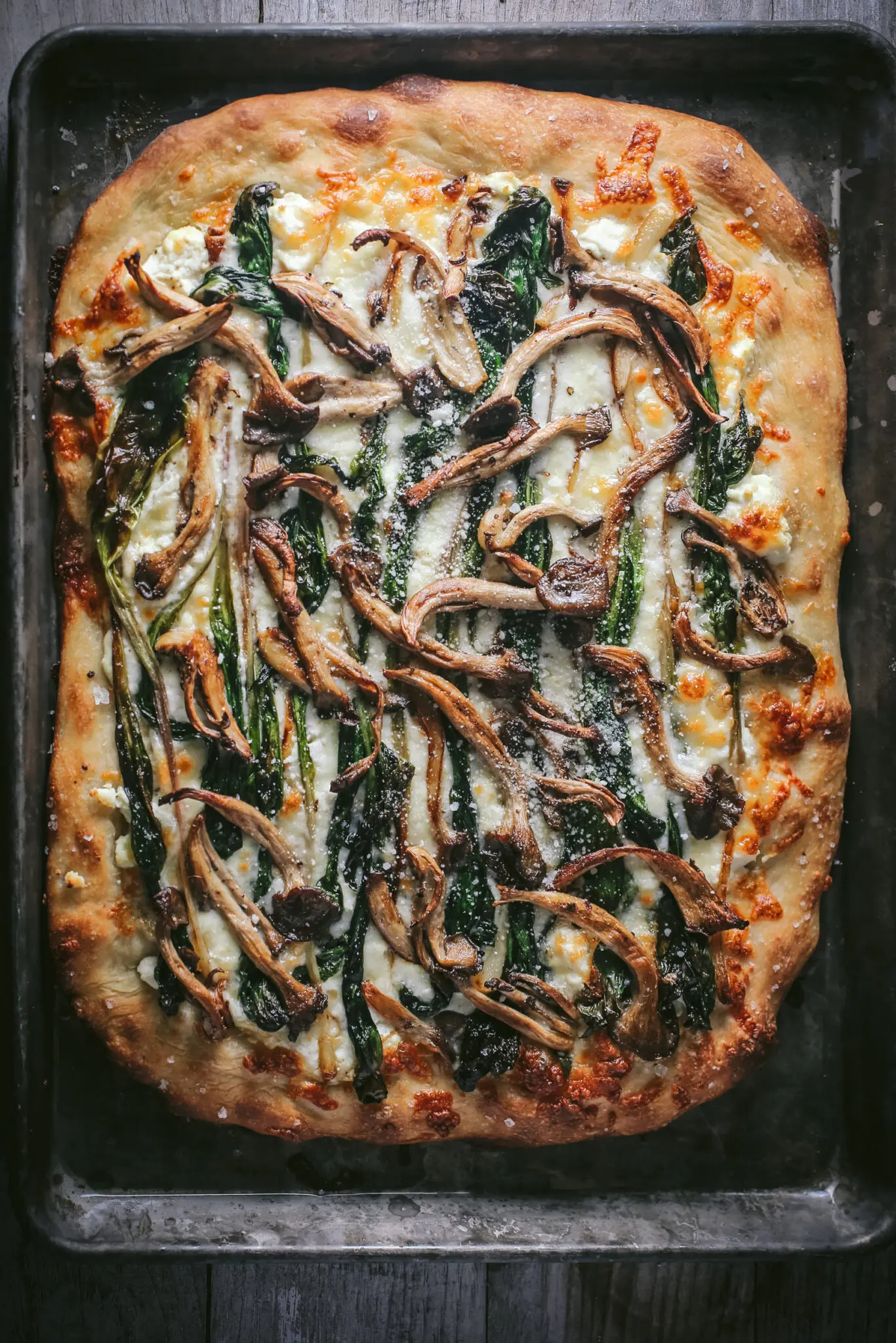 Sheet-Pan White Pizza with Ramps and Oyster Mushrooms