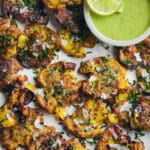 These smashed potatoes are topped with the most delicious garlic-parmesan butter which helps them get ultra crispy on the outside with a tender, buttery center. The aroma from these as they bake is almost as good as the flavor.
